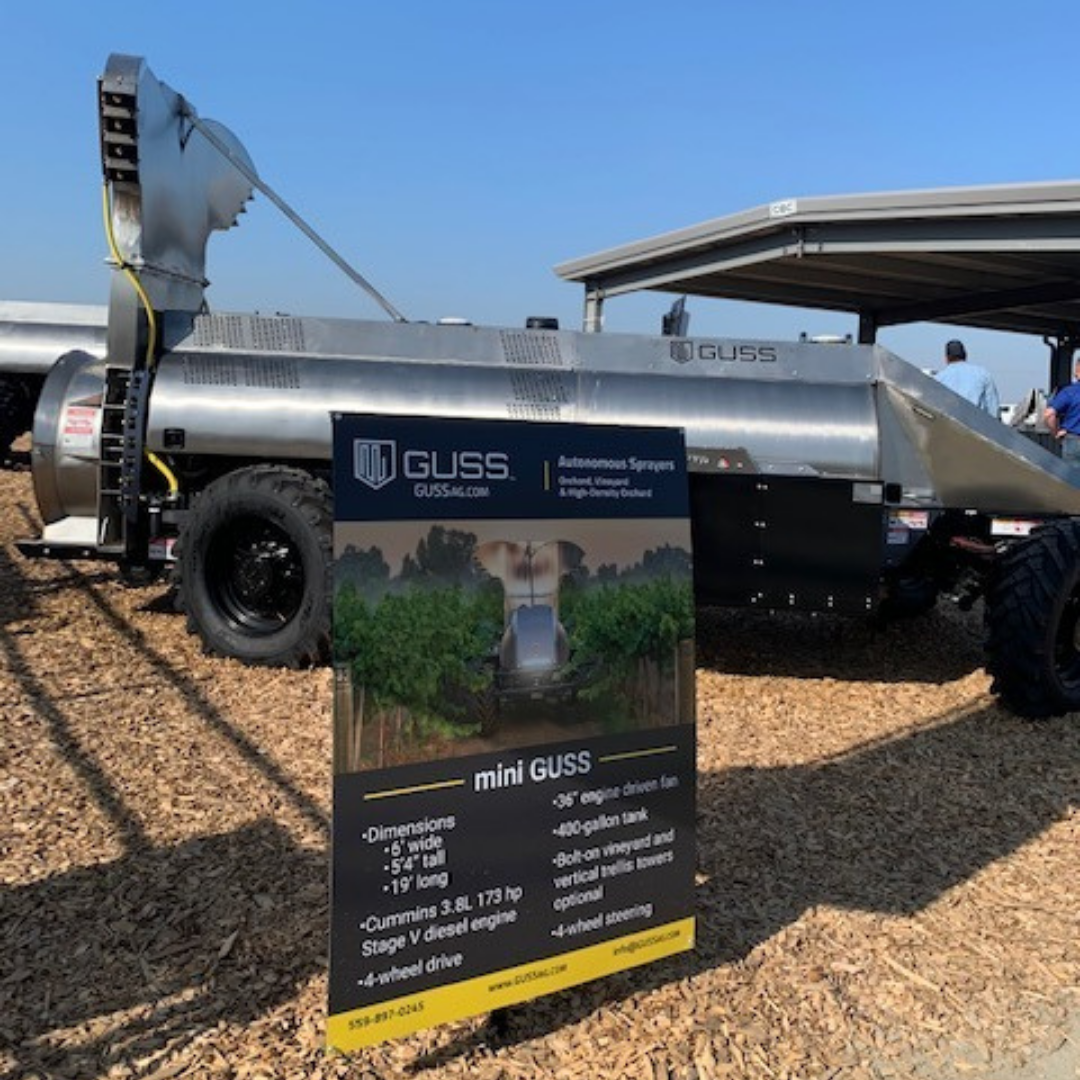 We first saw GUSS Automation at the 2020 World Age Expo. GUSS offers autonomous agricultural equipment. This year, they demonstrated their new, more compact version of GUSS. The mini GUSS allows vineyard, hops, blueberry, and high-density orchard growers to realize the many benefits of GUSS autonomous sprayers.